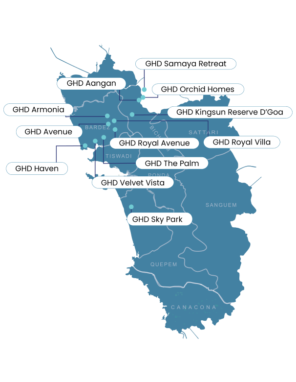 At GHD Group, we craft luxurious vacation homes and premium communities in Goa, blending comfort, style, and investment potential. Our properties feature world-class amenities, offering the perfect retreat and a valuable future asset.